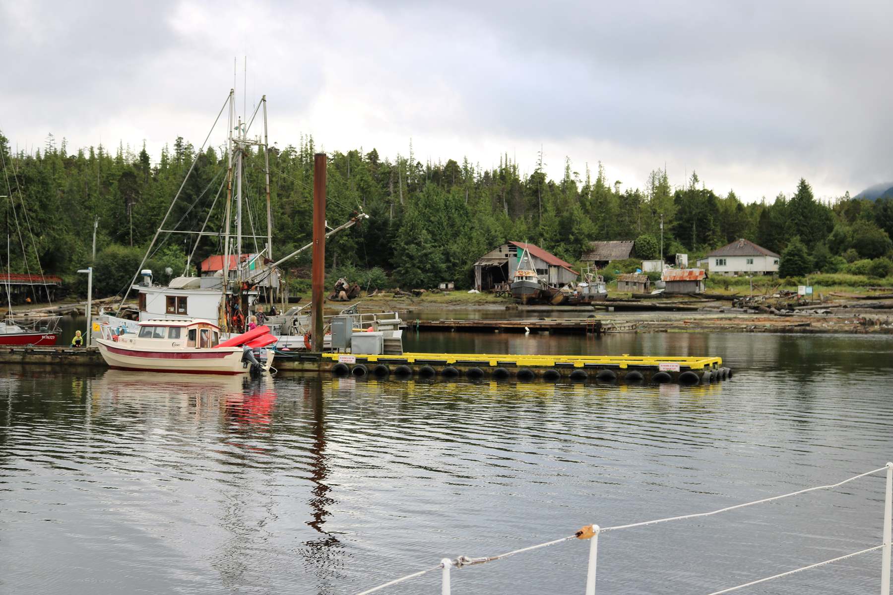 9.10 septembre. Dawsons Landing. Nous sommes encore dans un lieu hors du temps, un hameau sur pontons flottants. Mais un Hub !