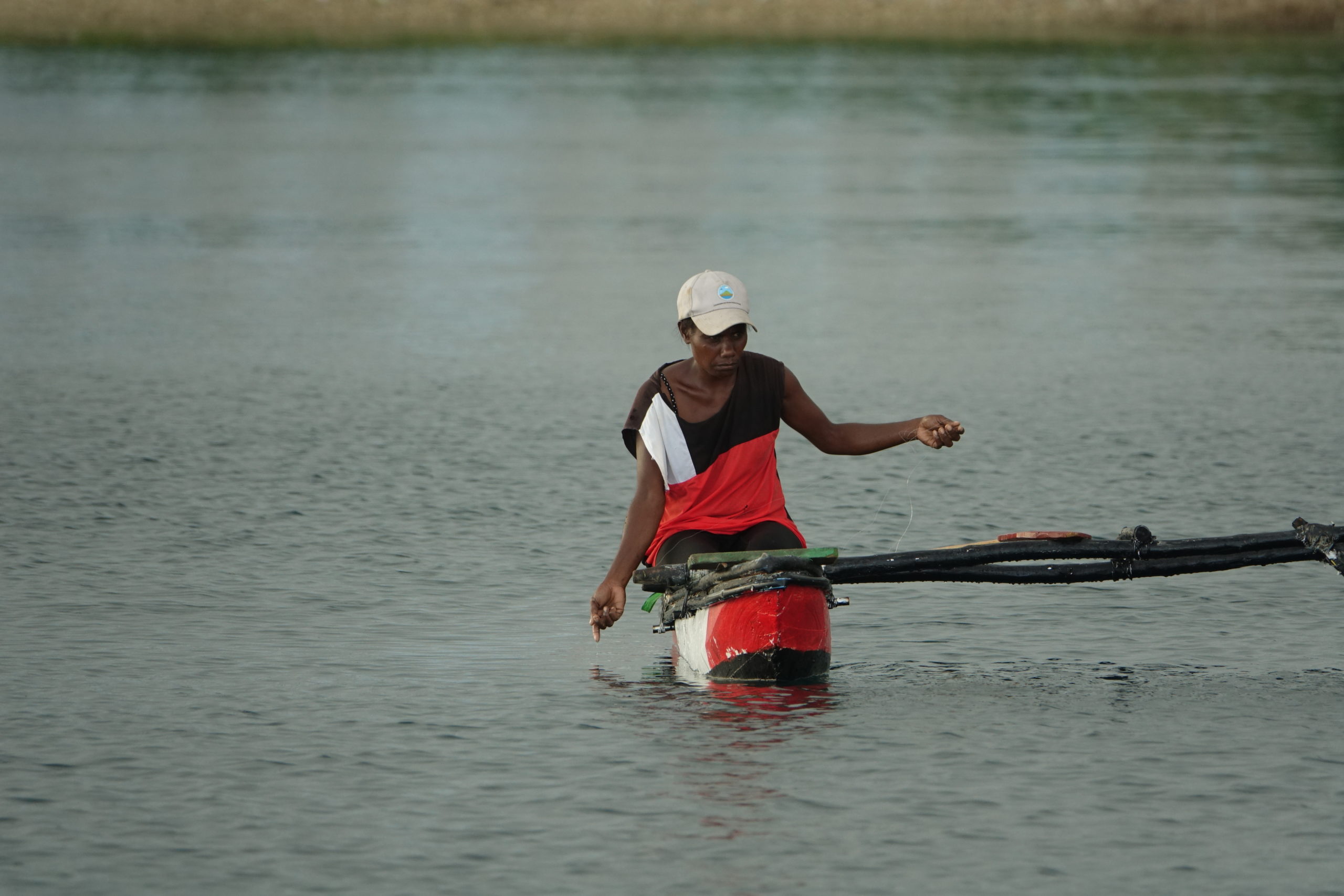 Je bavarde avec Esther qui pêche de sa pirogue, de jolis petits poissons d’aquarium qui serviront de friture pour le dîner. Pourtant, Esther a un travail, elle s’occupe d’une personne âgée, 5 jours par semaine.