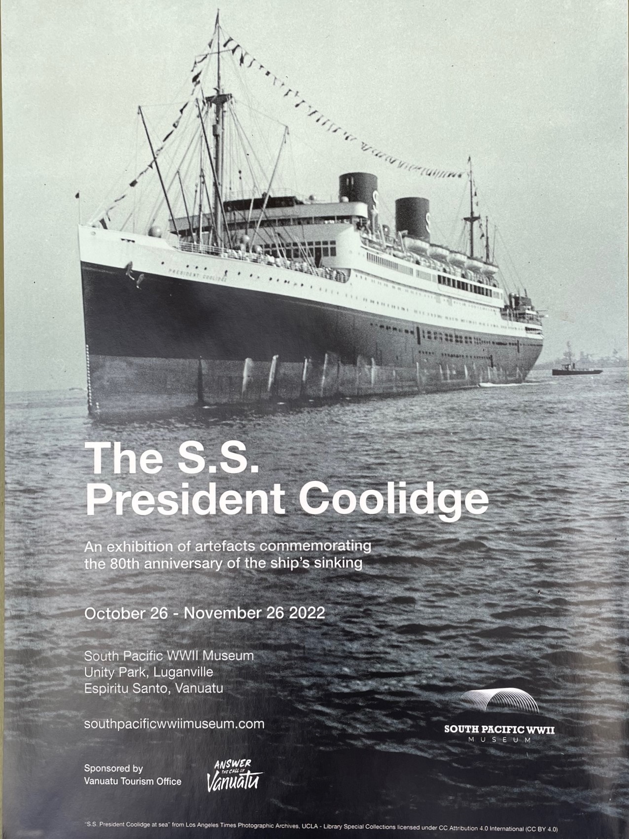 Le petit musée de la Seconde Guerre Mondiale en ce moment consacré au naufrage du SS Président Coolidge. 80 ans.