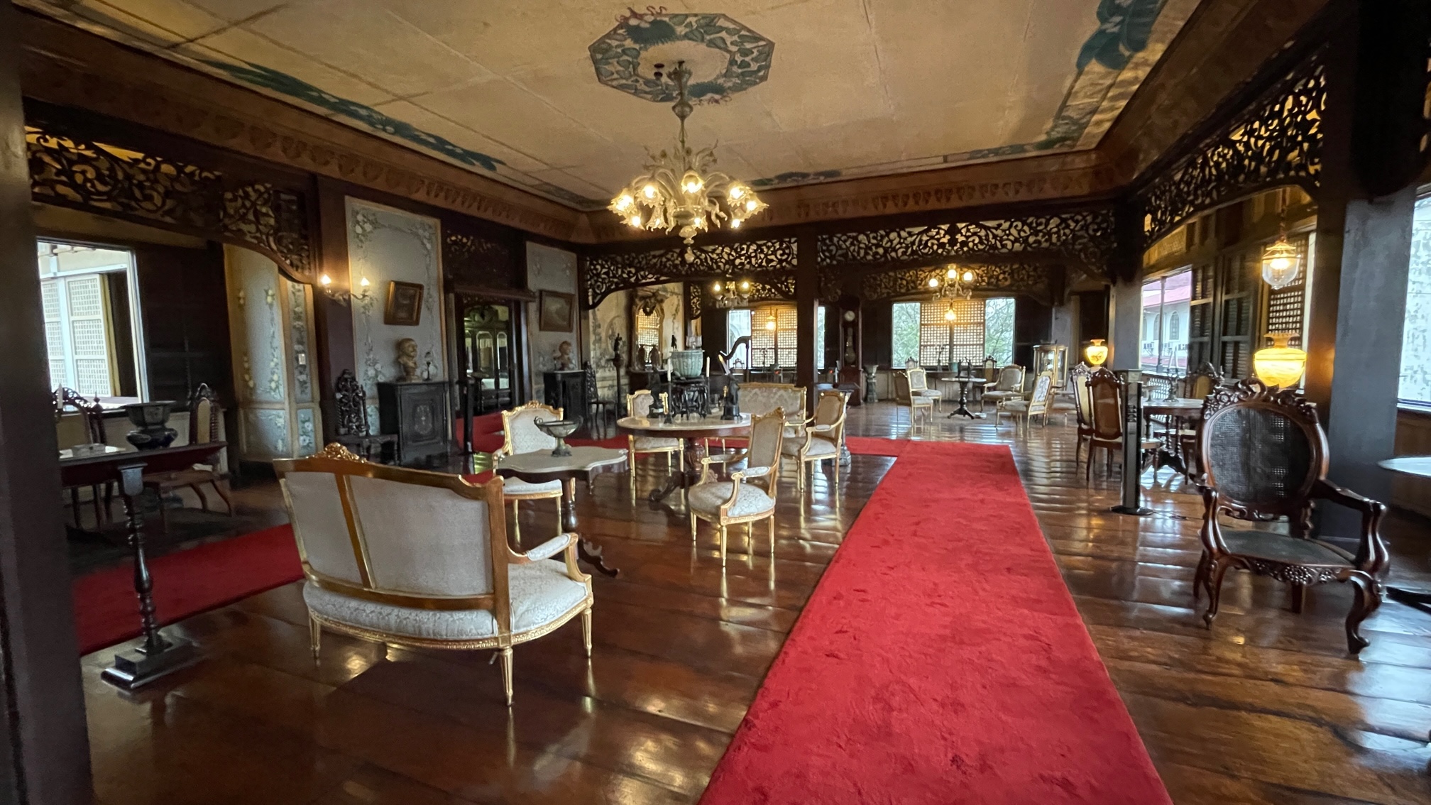 La casa Manila. Reconstruite en 1970. Architecture inspirée des maisons chinoises du quartier de Binondo du milieu du XIX-eme siècle…un intérieur reconstitué qui montre comment pouvait vivre une famille aisée à la fin de la période coloniale.