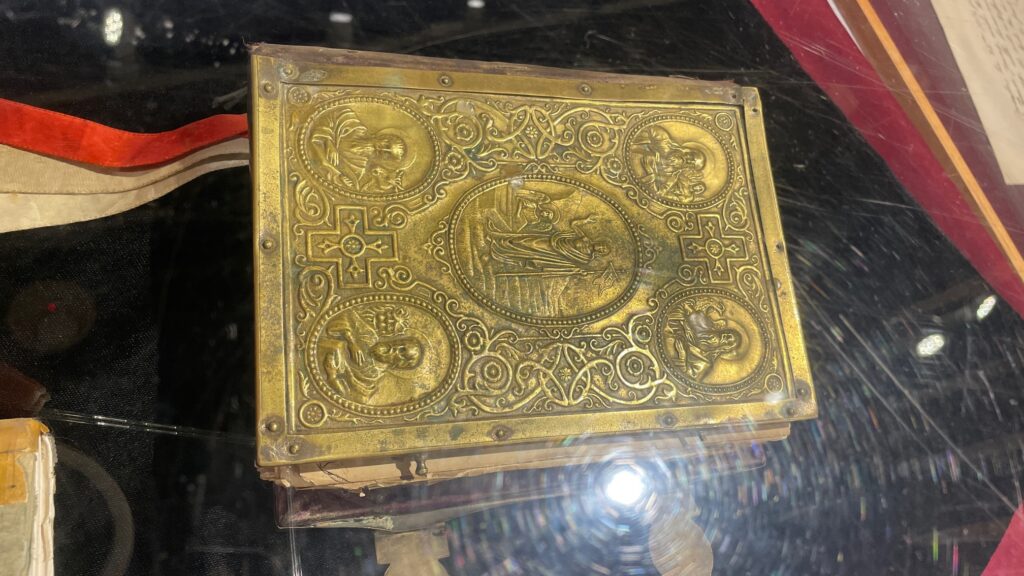 Croix orthodoxe et livre religieux de Chenega conservés à Cordova.