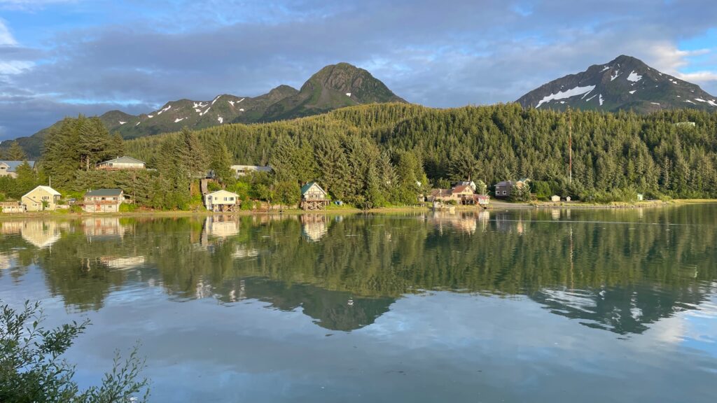 Le village de Nuchek se trouve lui de l’autre côté à l’ouvert de la grande baie d’Etches Harbor.