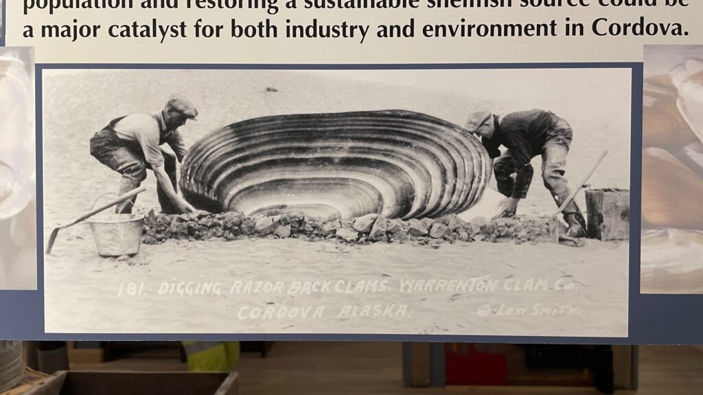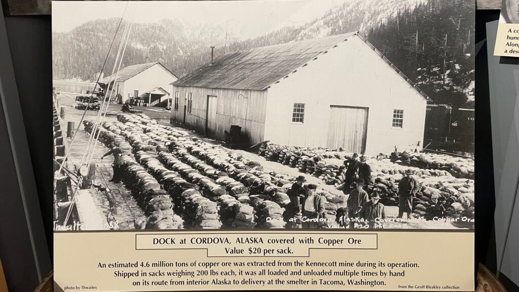 Cordova : L’histoire de Cordova débute par l’arrivée de l’Espagnol le lieutenant Don Salvador Fidalgo à bord du San Carlos en 1790. Il nomme cette baie Puerto de Cordoba en l’honneur de son mécène Don Luis Cordoba y Cordoba. Il constate que les Natives utilisent déjà le cuivre pour leurs objets usuels mais ce n’est qu’à l’aube du 20ᵉ siècle qu’un gisement de cuivre particulièrement riche est découvert à Kennecott à 320km de la petite ville dans les Wrangell Mountains. Une voie de chemin de fer est construite, pour acheminer le minerai, une véritable prouesse technique, moins 50° C, des bourrasques qui font dérailler les wagons et des blizzards qui ensevelissent les locomotives. Beaucoup de personnes ne croyaient pas en cette ligne ferroviaire et la « Copper River and Northwestern Railway” était surnommée “Cannot Run and Never Will Railway.”